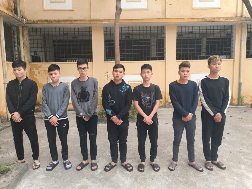 Nhóm thanh niên bị lực lượng chức năng tạm giữ hình sự. Ảnh CTV |
