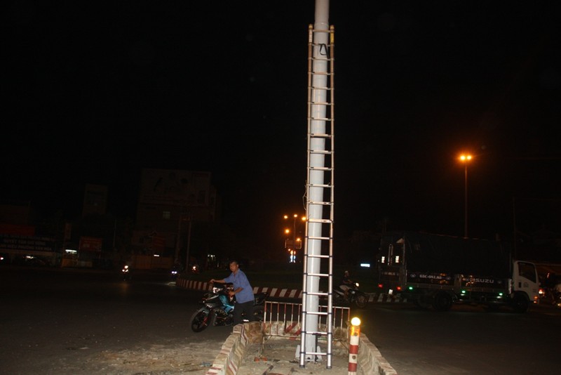 Sau khi tháo dỡ vòng xoay, lực lượng chức năng cho lắp đặt hệ thống đèn tín hiệu giao thông.