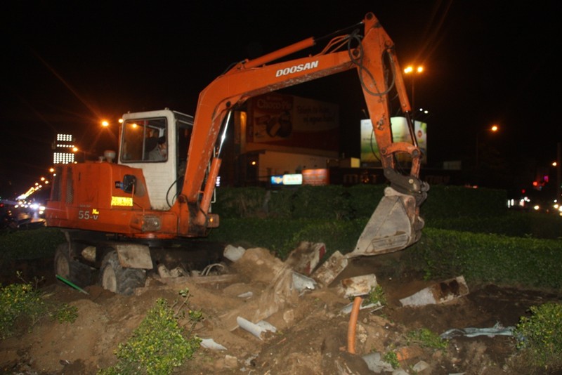 Hình ảnh thi công phá bỏ vòng xoay Hưng Lợi đêm 27-4: