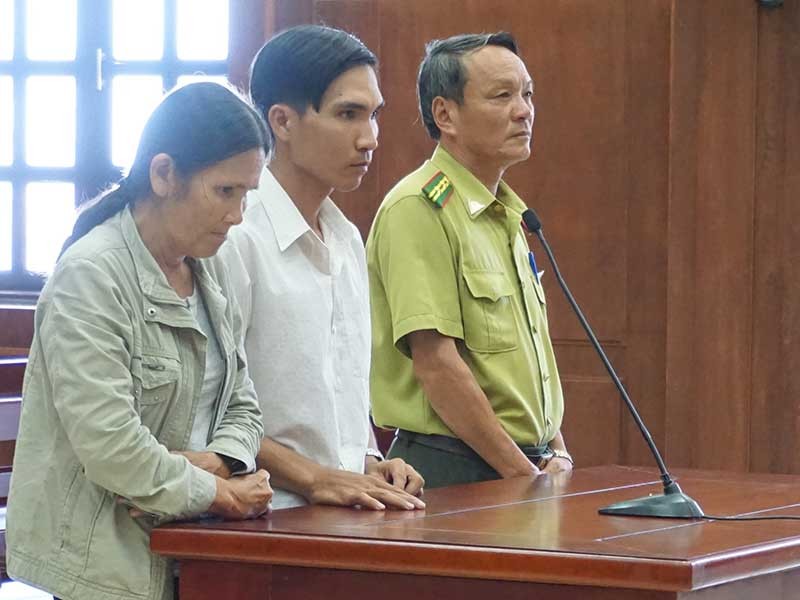 Vợ con ông Hóa (trái) và đại diện cơ quan kiểm lâm huyện Hoài Ân, Bình Định tại tòa. Ảnh: KIỀU VŨ