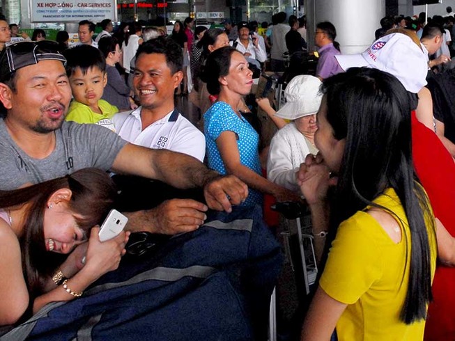 Tại ga quốc tế của sân bay Tân Sơn Nhất, dù chưa phải là thời gian cao điểm khách quốc tế và Việt kiều về quê đón Tết nhưng có nhiều gia đình tại TP.HCM và các tỉnh đổ về sân bay để đón người thân khiến số người tập trung ở khu vực này đông nghẹt người. Anh Hùng Nguyễn, một Việt kiều Mỹ, cho hay hằng năm gia đình anh thường về Bà Rịa-Vũng Tàu đón Tết cùng người thân ba tuần. Để không gây phiền hà cho bà con ở quê, mỗi khi về anh đều dặn không cần đến sân bay đón. Tuy nhiên, có lẽ do nóng ruột nên người thân của anh vẫn đến.