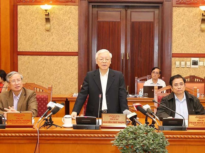 Tổng Bí thư Nguyễn Phú Trọng phát biểu tại cuộc họp Ban Bí thư. Ảnh : TTXVN