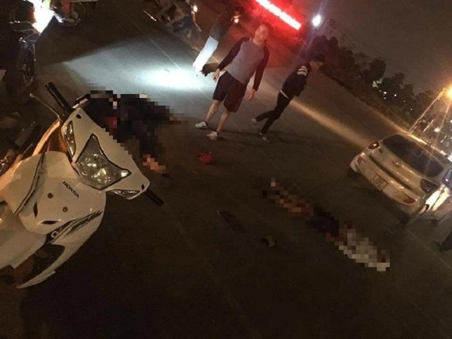 Khoảng 22 giờ 30 tối 11-4, trên đường Tô Hiệu, quận Hà Đông, Hà Nội, một chiếc xe taxi và xe máy xảy ra va chạm khiến hai người đi xe máy ngã xuống đường, bị thương.