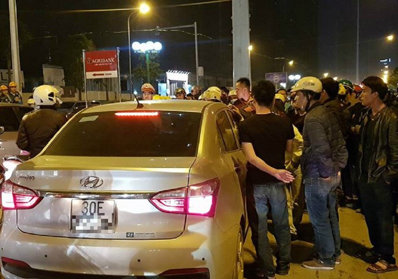 Chiều tối 16-4, tại đường Tố Hữu, đoạn qua địa bàn phường Mỗ Lao (Hà Đông, Hà Nội), rất đông người tham gia giao thông vây kín chiếc xe ô tô mang BKS 30E-965.xx, bên trong có một tài xế đang cố thủ. Đứng cạnh là một đôi vợ chồng đi xe máy, người vợ bị sưng vùng mắt, còn người chồng chảy nhiều máu vùng mặt.