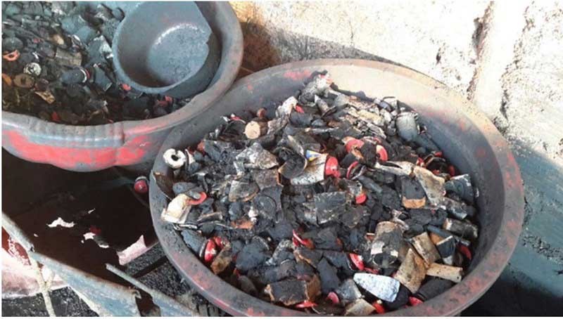 Pin được đập lấy lõi để nhuộm cà phê tại cơ sở kinh doanh nông sản của bà Nguyễn Thị Thanh Loan. Ảnh: ĐD