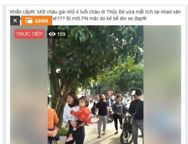 Facebook quay trực tiếp "cháu bé bị mất tích" khiến nhiều người lo lắng.