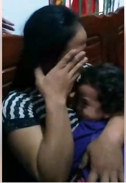 Người thân vui mừng và phát khóc khi tìm được bé ngủ dưới gầm giường chứ không phải mất tích.