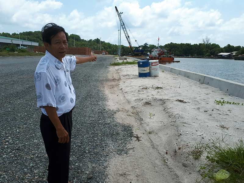 Ông Phạm Văn Thường chỉ thửa đất gần 5.000 m2 của mình được tòa tuyên trả lại mà huyện chưa thực hiện xong. Ảnh: T.VŨ