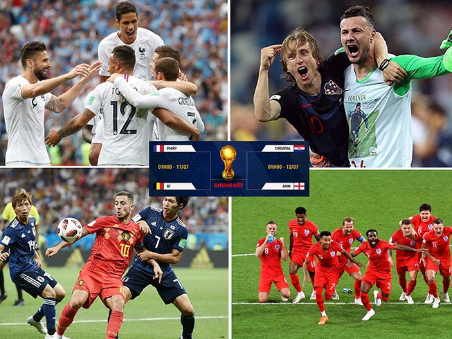 Pháp sẽ phải đối đầu với Bỉ trong trận bán kết đầu tiên trên sân Saint Petersburg, trong khi tuyển Anh sẽ đụng độ Croatia tại sân Luzhniki ở Moscow.