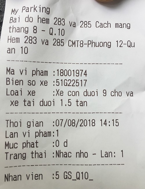 Với các trường hợp như thế, nhân viên trật tự đô thị quận và người của Viettel chỉ còn cách in ra và dán tờ phiếu nhắc nhở vào khe kính chiếu hậu. “Từ sau 1-8, nhiều tài xế đã đỗ xe ở đây đến nhẵn mặt nhưng không đóng phí. Chúng tôi đã dán nhiều tờ phiếu nhắc nhở nhưng họ biết là chưa bị xử phạt nên cứ đậu lì, đỗ chùa” - một nhân viên thu phí nói.