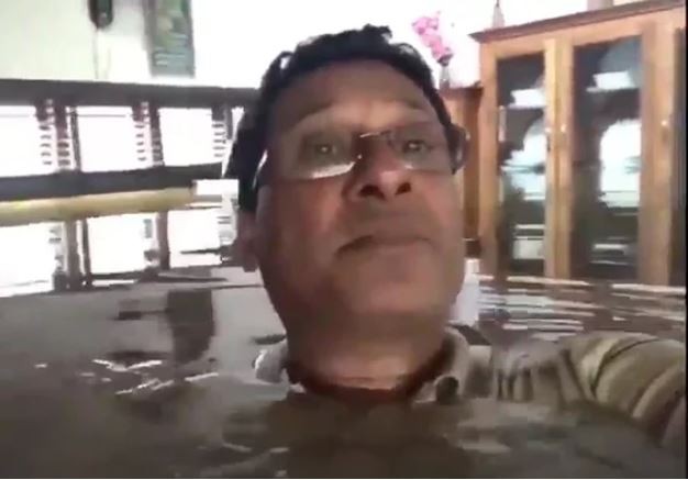 Người dân chụp hình mình đang mắc kẹt trong ngôi nhà lụt và kêu cứu. Ảnh: GUARDIAN