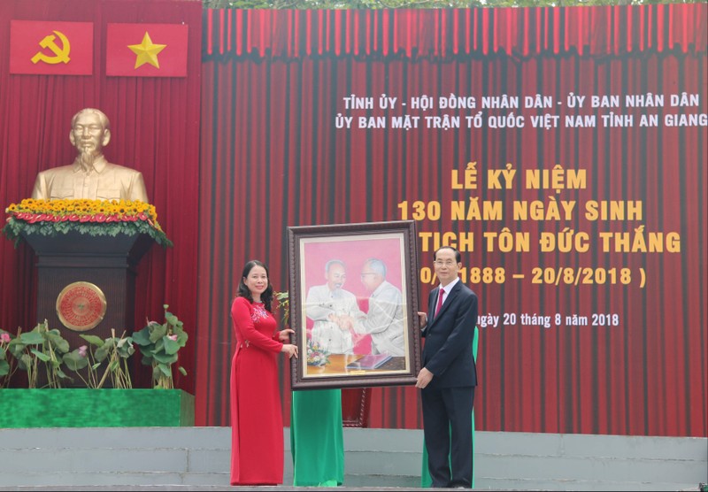 Chủ tịch nước nhấn mạnh: “Cuộc đời và sự nghiệp cách mạng cao đẹp của Chủ tịch nước Tôn Đức Thắng thôi thúc mỗi cán bộ, đảng viên chúng ta hôm nay luôn nêu cao ý chí cách mạng kiên cường, không ngừng phấn đấu, tu dưỡng, rèn luyện phẩm chất, đạo đức cách mạng; suốt đời học tập, nâng cao trình độ, năng lực hoạt động thực tiễn; luôn đặt lợi ích của Đảng, của cách mạng và nhân dân lên trên lợi ích cá nhân, sẵn sàng cống hiến, chiến đấu, hy sinh vì sự nghiệp cách mạng vẻ vang của Đảng và dân tộc.