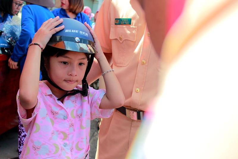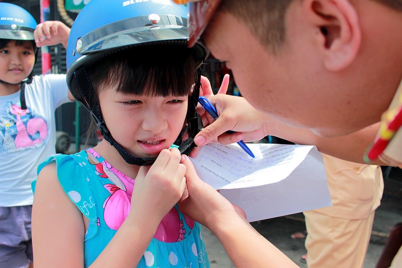 trẻ em từ 6 tuổi trở lên sẽ được CSGT hướng dẫn, tặng nón bảo hiểm miễn phí cho trẻ, nhắc nhở và dặn dò cả phụ huynh lẫn con em phải nhớ đội nón bảo hiểm khi tham gia giao thông. CSGT còn ghi lại thông tin và yêu cầu phụ huynh ký vào bản cam kết.
