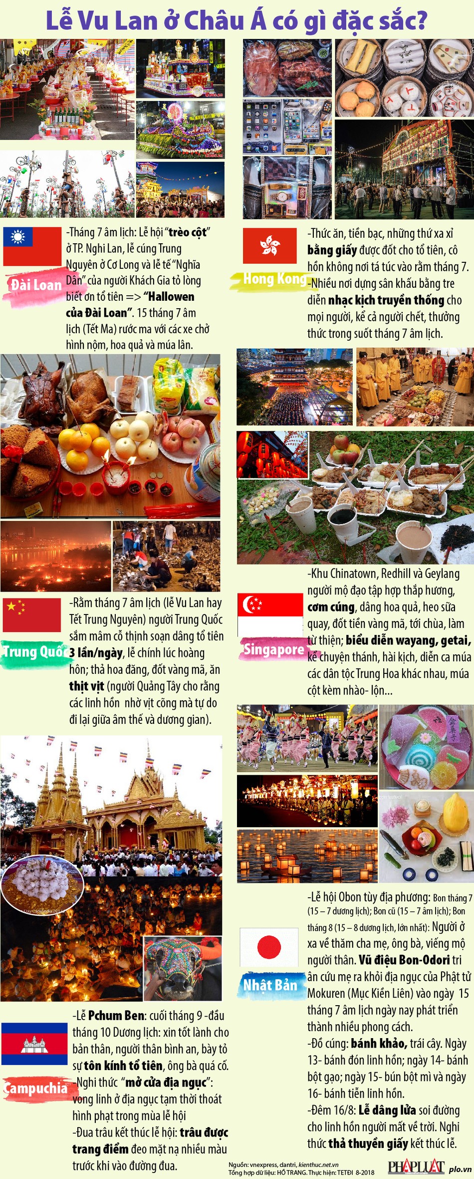 (PLO)- Nếu như Việt Nam có ngày lễ Vu Lan thì các nước, vùng lãnh thổ Châu Á cũng có lễ hội với ý nghĩa tương tự nhưng với tên gọi khác, đó là lễ hội Pchum Ben ở Campuchia, Obon ở Nhật, tết Ma ở Đài Loan...