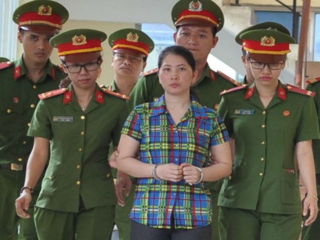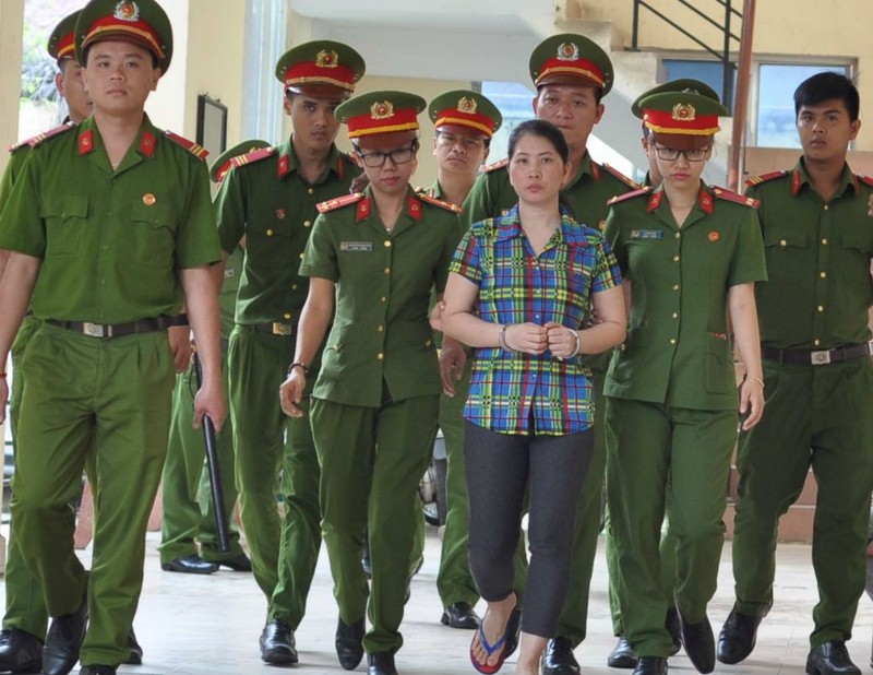 Bị cáo Diễm dẫn giải tại phiên tòa. Ảnh: VH.
