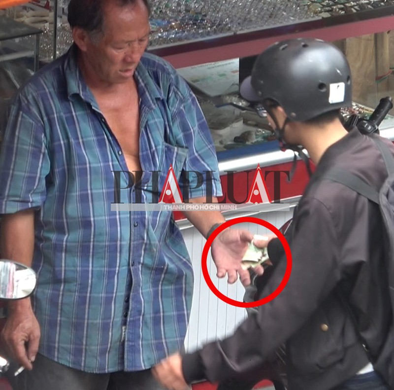 Người vi phạm nhét tiền vào quầy hàng của chủ sạp và đưa trực tiếp cho ông Xuân.