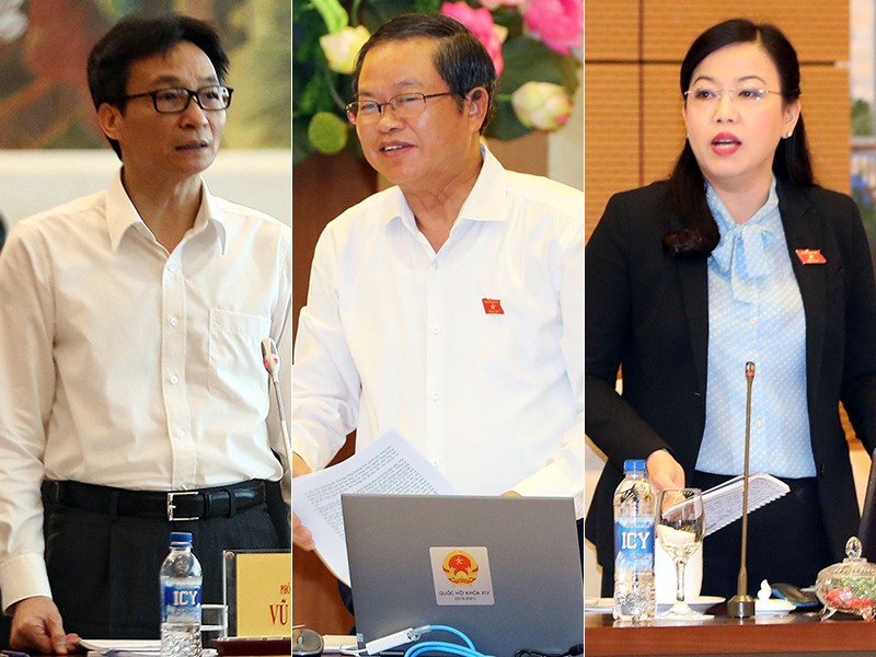 Phó Thủ tướng Vũ Đức Đam, Phó Chủ tịch QH Đỗ Bá Tỵ và Trưởng ban Dân nguyện Quốc hội Nguyễn Thanh Hải (từ trái sang) phát biểu tại phiên họp. Ảnh: TTXVN-VGP