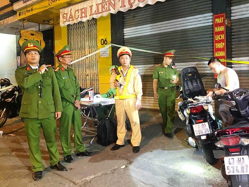 Đại tá Lê Ngọc Hai (thứ hai từ trái sang) ra đường theo dõi Tổ công tác 911 làm việc. Ảnh: HH