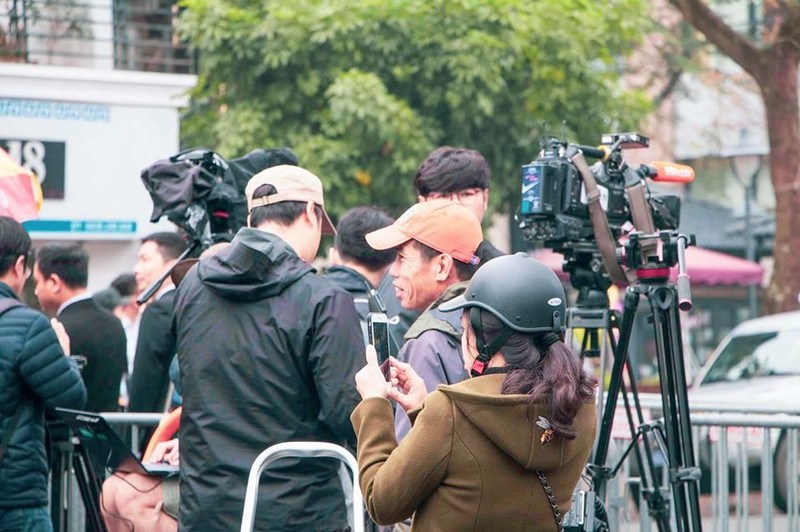 Nhiều phóng viên trong nước cũng đến đây sẵn sàng đưa tin. Ảnh: LAN NGUYỄN