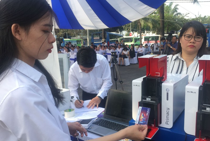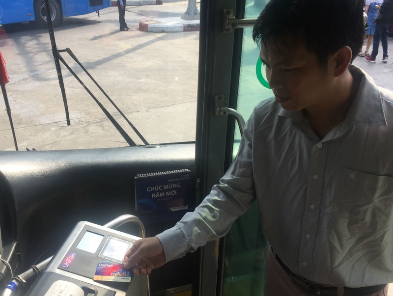 Sáng 8-3, Sở GTVT chính thức đưa vào thí điểm quẹt thẻ vé điện tử khi đi xe buýt. Theo ông Trần Quang Lâm, phó giám đốc điều hành Sở GTVT, bước đầu thực hiện thí điểm quẹt thẻ trên 141 xe của 9 tuyến xe buýt. Bước tiếp theo, từ tháng 7-2019 sẽ triển khai trên 139 xe của 7 tuyến buýt.