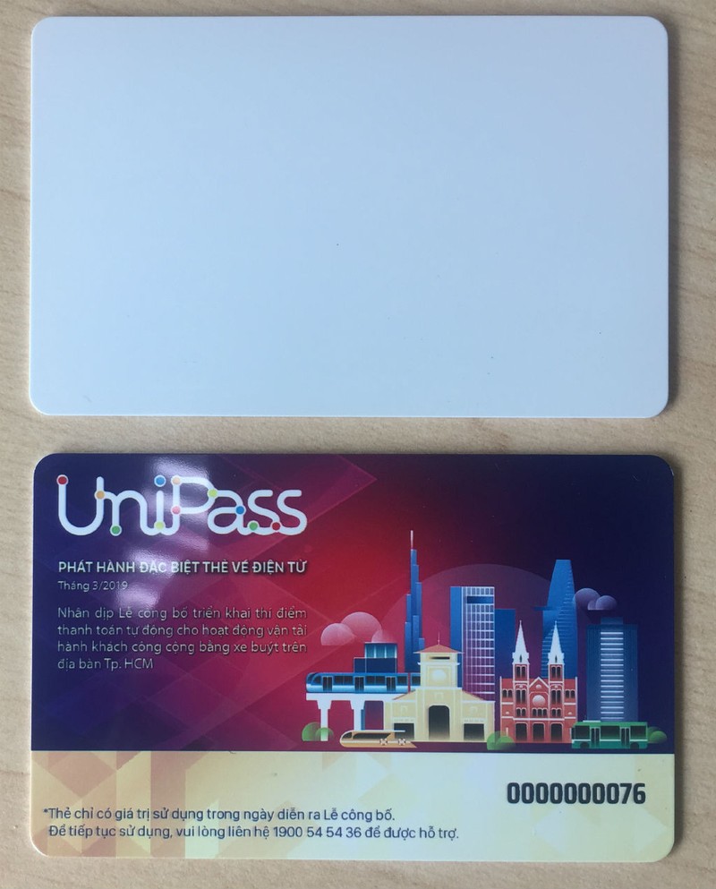 Phôi và thẻ chíp UniPass sau khi được nhập thông tin của người đi xe buýt và in ra