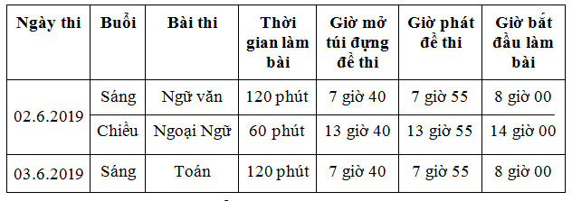 Lịch thi diễn ra ngày 2 và 3 tháng 6