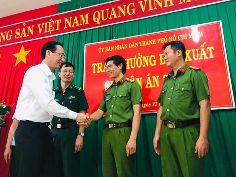 Lãnh đạo UBND TP.HCM thưởng nóng ban chuyên án. Ảnh: NGUYỄN TRÀ