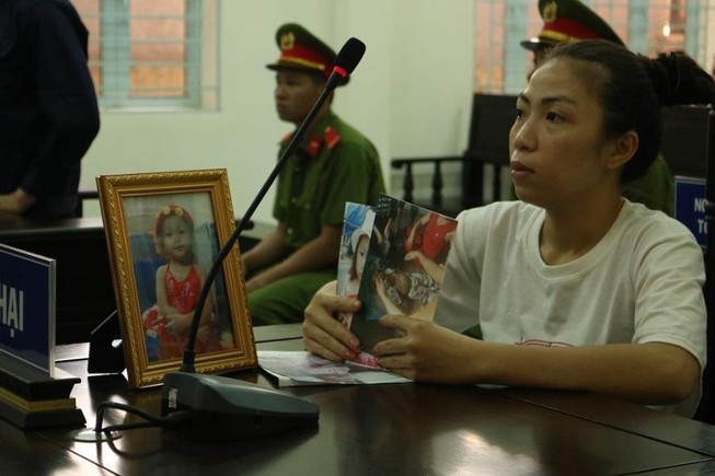 Chị Tố Anh ôm di ảnh bé Hân ra tòa xử kẻ thủ ác.