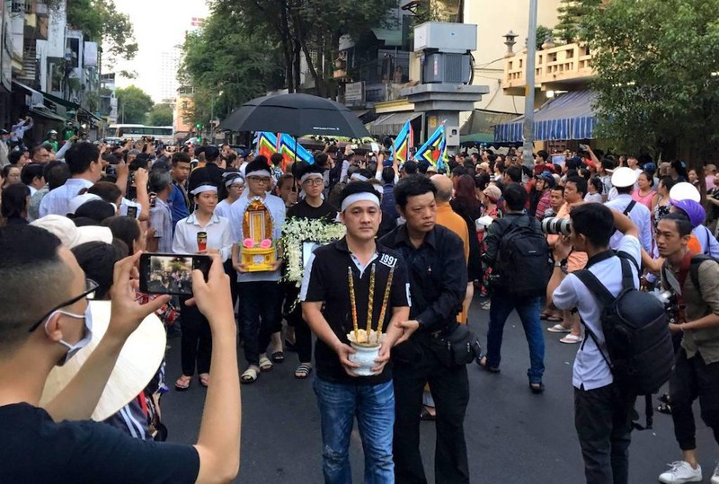 Cùng với gia đình, những nghệ sĩ, bạn hữu thân thiết của diễn viên Anh Vũ đã có mặt tại chùa Ấn Quang từ hơn 5 giờ sáng nay (12-4) để chuẩn bị cho lễ di quan linh cữu diễn viên.