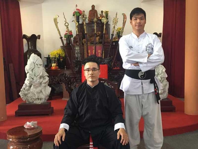 Võ sư Nam Anh Kiệt (người ngồi) là người đánh võ sư Khánh. Ảnh: FBNV