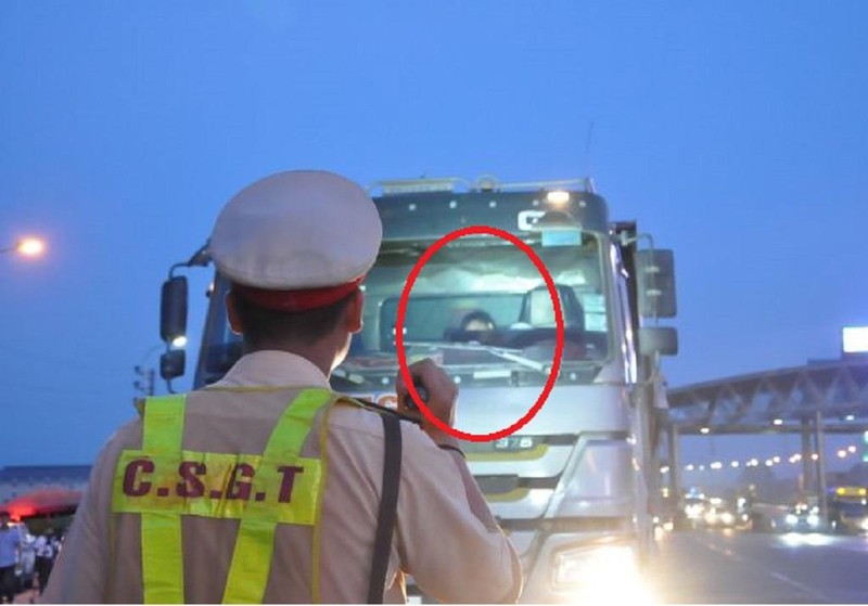 Thấy lực lượng CSGT ra hiệu lệnh dừng xe, tài xế đánh lái tiếp tục di chuyển nhằm thoát khỏi sự kiểm soát. Tuy nhiên, Đội 7 đã cương quyết yêu cầu lái xe đỗ vào ven đường để cân tải trọng theo kế hoạch.