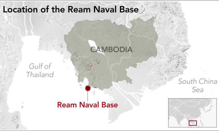 Vị trí căn cứ hải quân Ream của Campuchia. Ảnh: Nikkei Asian Review