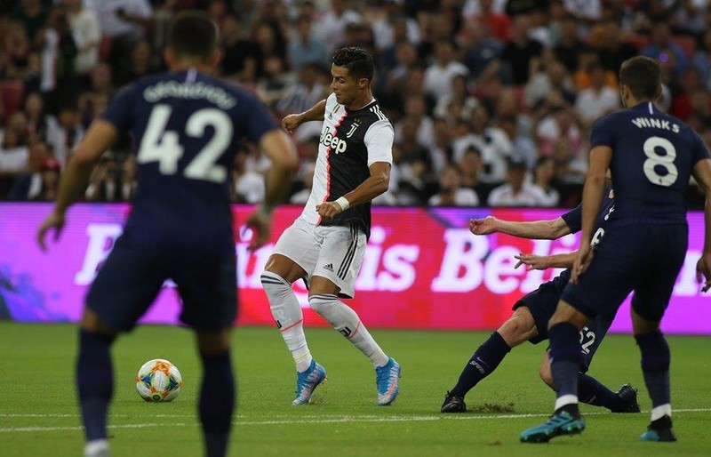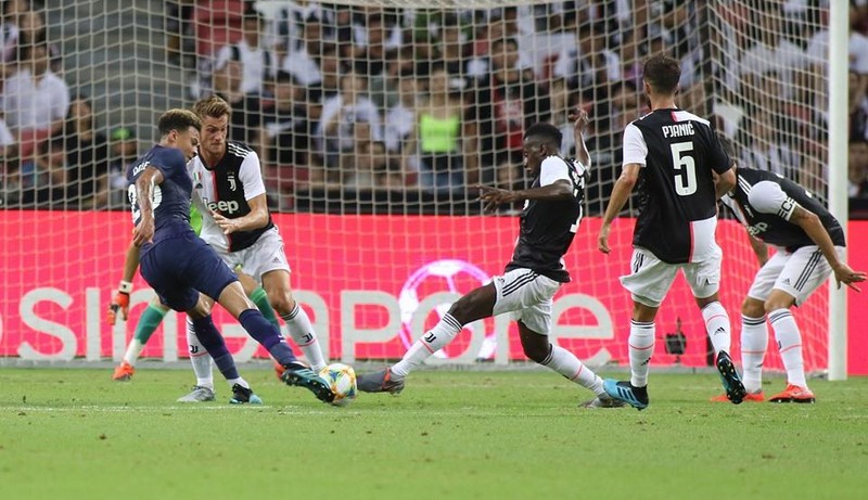 Trận đấu giữa Juventus và Tottenham diễn ra cực kỳ hấp dẫn trước sự cổ vũ cuồng nhiệt của 50.433 khán giả có mặt trên sân quốc gia Singapore, trong đó có nhiều nhóm fan khác nhau đến từ khắp châu Á mùa du lịch.