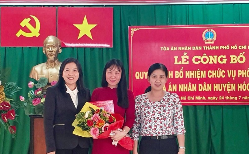 Theo đó, bà Lê Thị Xuân Mai (SN 1978), thẩm phán sơ cấp công tác tại TAND huyện Hóc Môn, được bổ nhiệm giữ chức vụ Phó Chánh án TAND huyện này. Nhiệm kỳ Phó chánh án của bà Mai là 5 năm kể từ ngày 15-7.