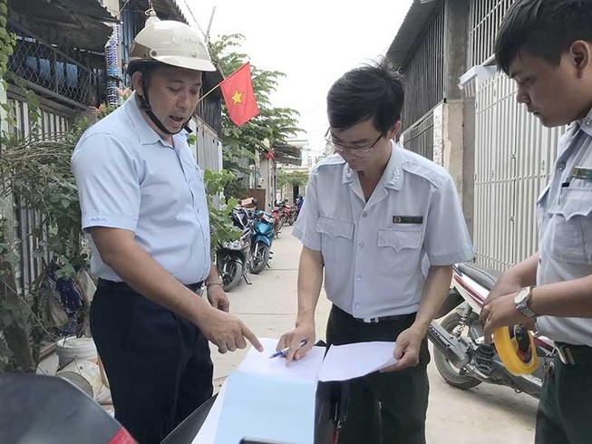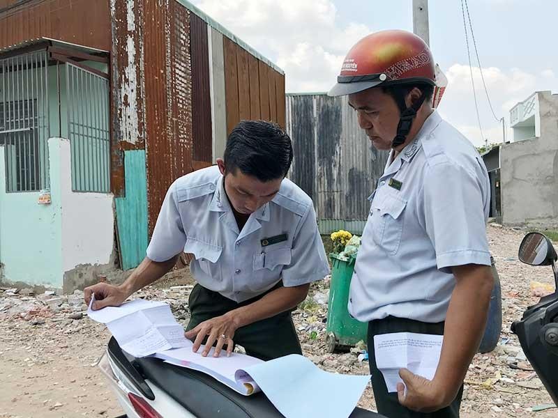Thanh tra Sở Xây dựng TP.HCM đang lập hồ sơ các công trình xây dựng không phép trên đất nông nghiệp tại xã Vĩnh Lộc A, huyện Bình Chánh. Ảnh: VIỆT HOA
