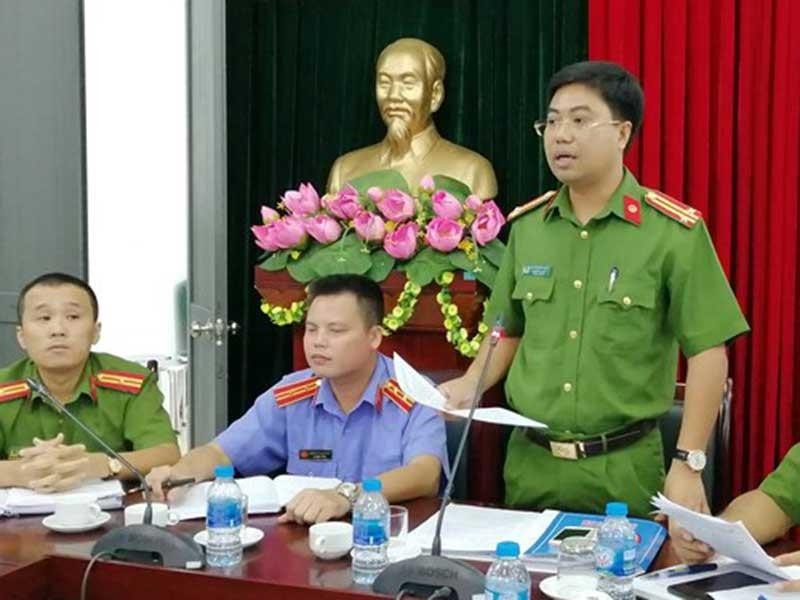 Trung tá Nguyễn Bình Ngọc, Phó Trưởng Công an quận Bắc Từ Liêm, thông tin với báo chí về vụ việc. Ảnh: TP