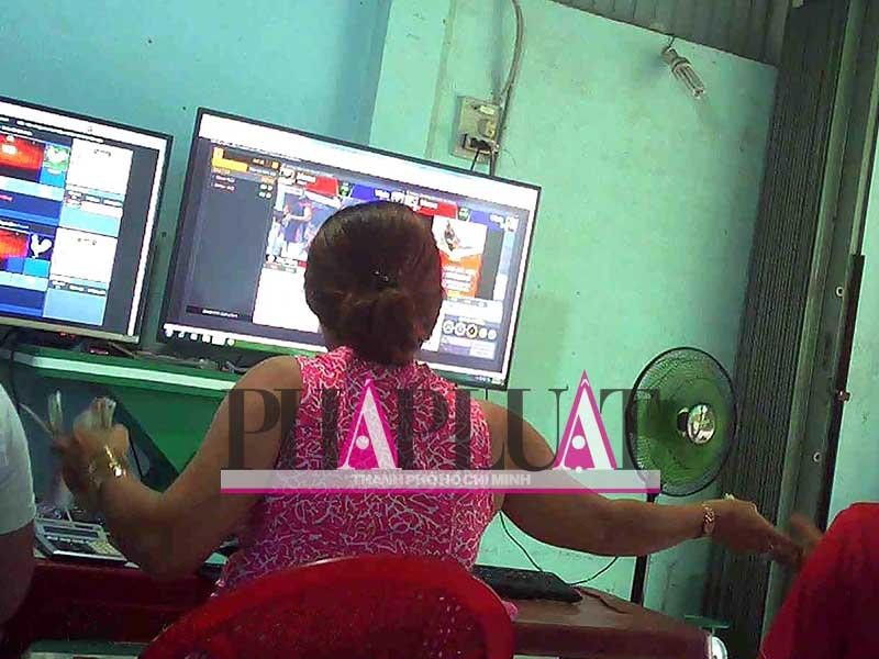 Trong khói thuốc lờ mờ, hơn 10 người, có cả phụ nữ dán mắt vào màn hình, thi thoảng có người vỗ đùi hoặc buông tiếng chửi thề vì thắng hoặc thua độ.