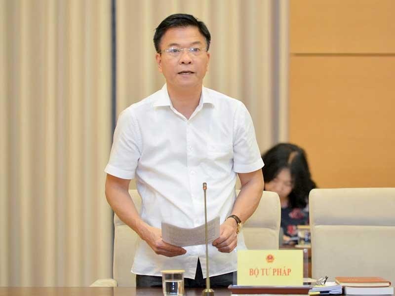 Bộ trưởng Bộ Tư pháp Lê Thành Long tại buổi giám sát. Ảnh: NN