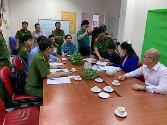 Công an làm việc với các ông Nguyễn Thái Luyện, Nguyễn Thái Lĩnh tại trụ sở Công ty Alibaba chiều 18-9 Ảnh: SỸ HƯNG