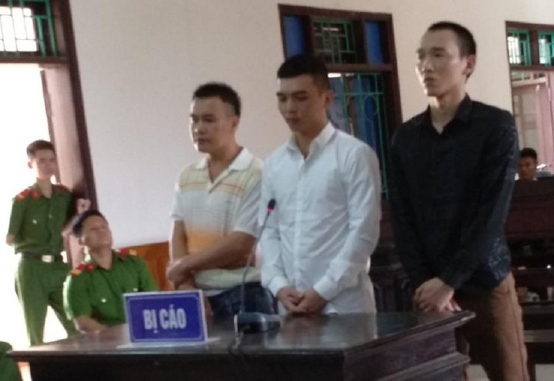 Các bị cáo Sơn, Hùng và Thảo tại tòa.