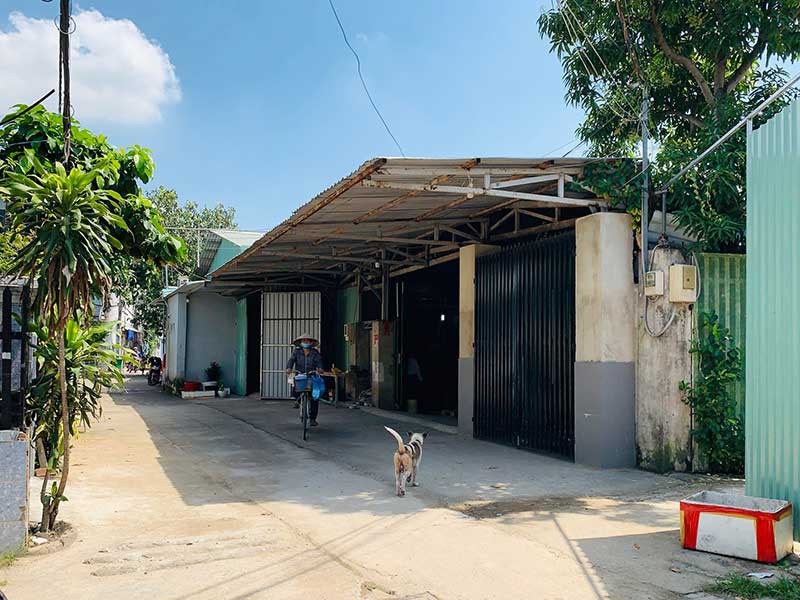 Năm căn nhà xưởng của gia đình ông Lê Hữu Thành chiếm gần nửa con hẻm 419/14, khu phố 6, phường Hiệp Bình Chánh, TP.HCM. Ảnh: VH