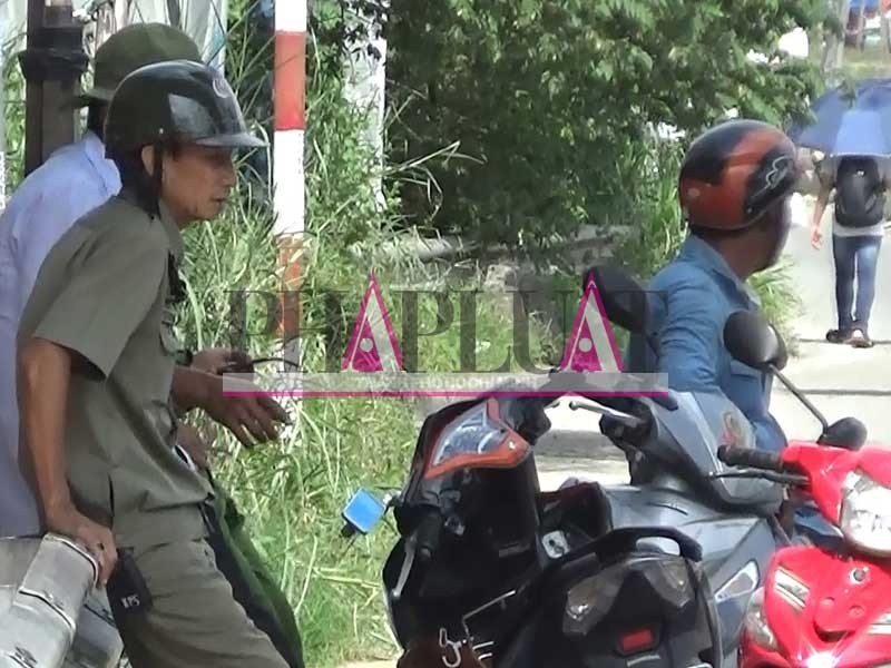 Khu vực dưới chân cầu bộ hành Suối Tiên có một cán bộ công an phường và hai bảo vệ dân phố đứng túc trực.