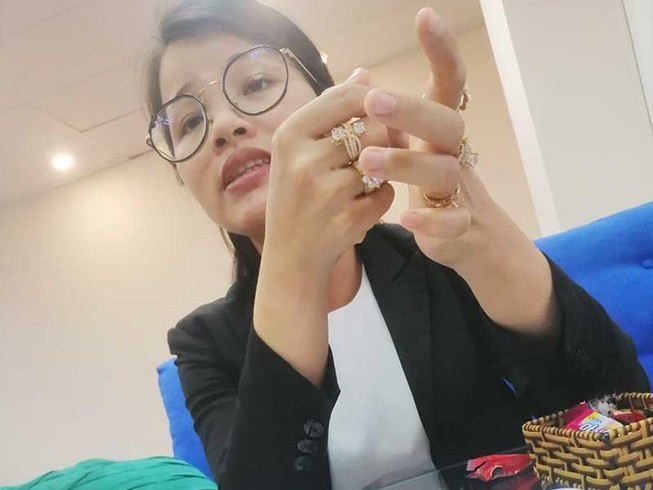 Nhân viên tên Th. đang tư vấn về dịch vụ sinh trắc DVT. Ảnh: GN