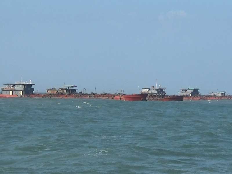 Các tàu âm thầm chia nhau khu vực hoạt động như có thỏa thuận trước. Trung bình mỗi sà lan dùng khoảng 25 vòi hút công suất lớn, cố định cho hướng xả nước vào giữa boong. Qua quan sát, hầu hết các sà lan này đều không thấy số hiệu. Một số sà lan có số chủ yếu mang mã Hải Phòng, Hải Dương…