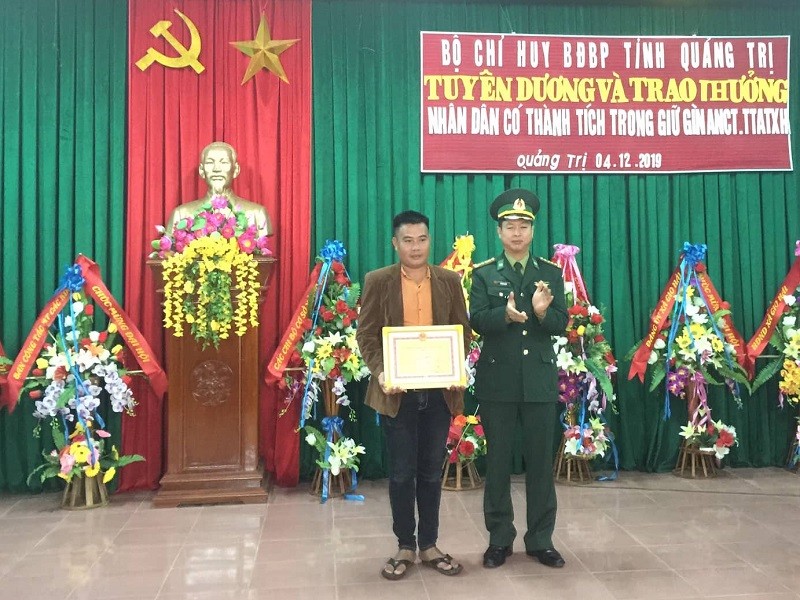 Ngày 4-12, Đại tá Lê Văn Phương, Chỉ huy trưởng BĐBP tỉnh Quảng Trị, cho biết đã tổ chức tuyên dương, thưởng nóng anh Phan Văn Sáu (29 tuổi, ngụ thôn Tân Hải, xã Gio Hải, huyện Gio Linh) vì có thành tích xuất sắc trong thực hiện phong trào toàn dân giữ gìn an ninh trật tự ở khu vực biên giới, biển đảo.