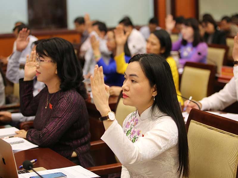 Đại biểu thông qua các tờ trình tại kỳ họp. Ảnh: HOÀNG GIANG