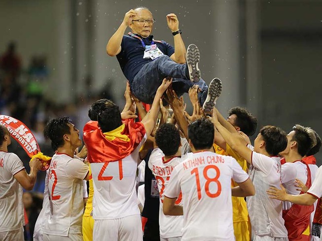 Ông thầy người Hàn Quốc và các học trò giữ đúng lời hứa mang HCV SEA Games 30 về nước sau trận chung kết thắng đối thủ quen thuộc Indonesia đã từng là bại tướng của U-22 Việt Nam (VN) ở vòng bảng.
