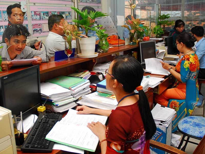 Việc sáp nhập các đơn vị hành chính sẽ giúp tinh gọn bộ máy chính quyền địa phương. Trong ảnh: Người dân làm thủ tục hành chính tại UBND xã Bình Hưng, huyện Bình Chánh, TP.HCM. Ảnh: HTD