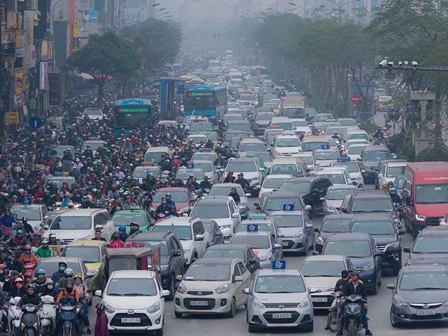 Kẹt xe là một trong những nguyên nhân gây ô nhiễm không khí. Ảnh: NGUYỄN CHÂU