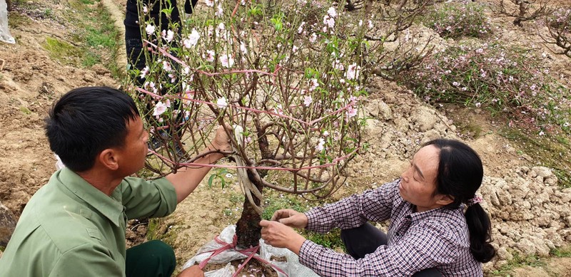 Vườn đào Đồng Dụ nở bung trước tết khiến các hộ dân méo mặt